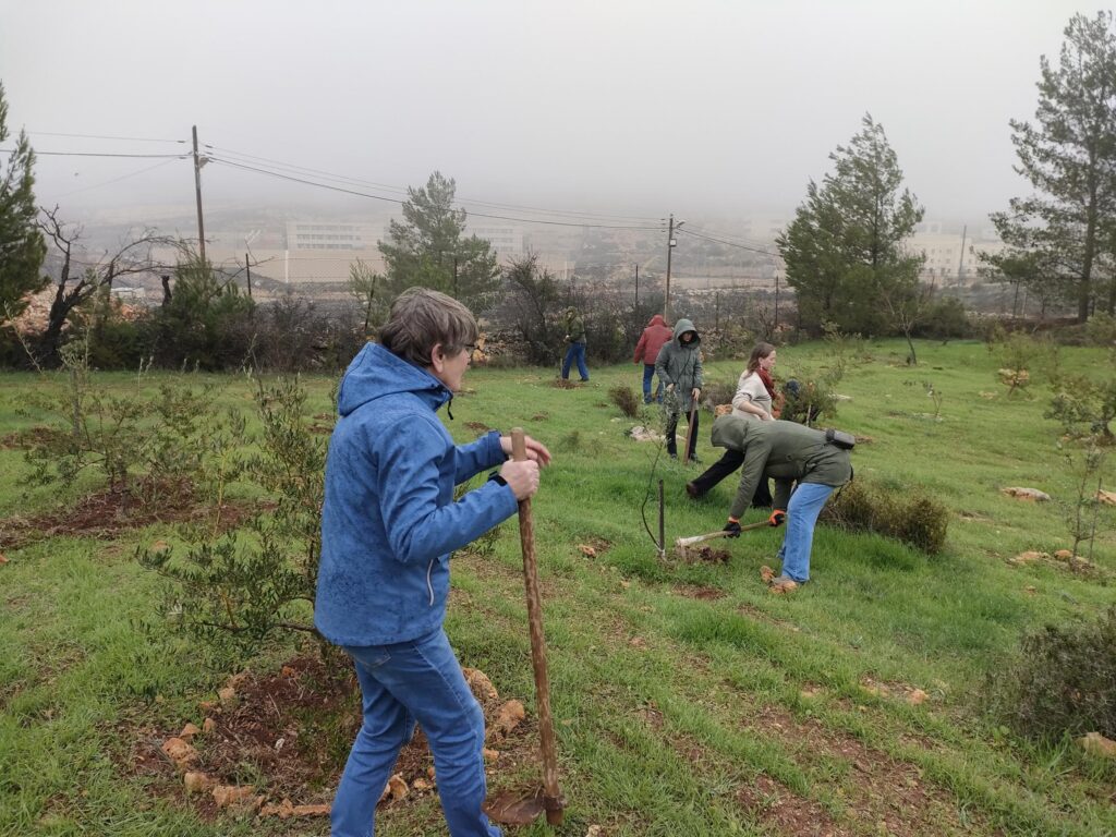 Om een beetje bij te komen van al deze misère maakten we de dag erna een tocht door de natuur rondom Battir. Natuur werkt helend. Wat ook helend werkte, is met elkaar aan de slag gaan bij Tent of Nations. Er was regen op komst, waar iedereen toen nog blij mee was en waarvan de jonge olijfbomenaanplant maximaal moest kunnen profiteren. Aan de slag dan maar, met hak en houweel. Een afsluitende kerkdienst in de Chapel Cave met alle vrijwilligers en de familie Nassar was voor mij een emotioneel breekpunt. Dat je zo moedig stand kunt houden tegen zoveel onrecht in…